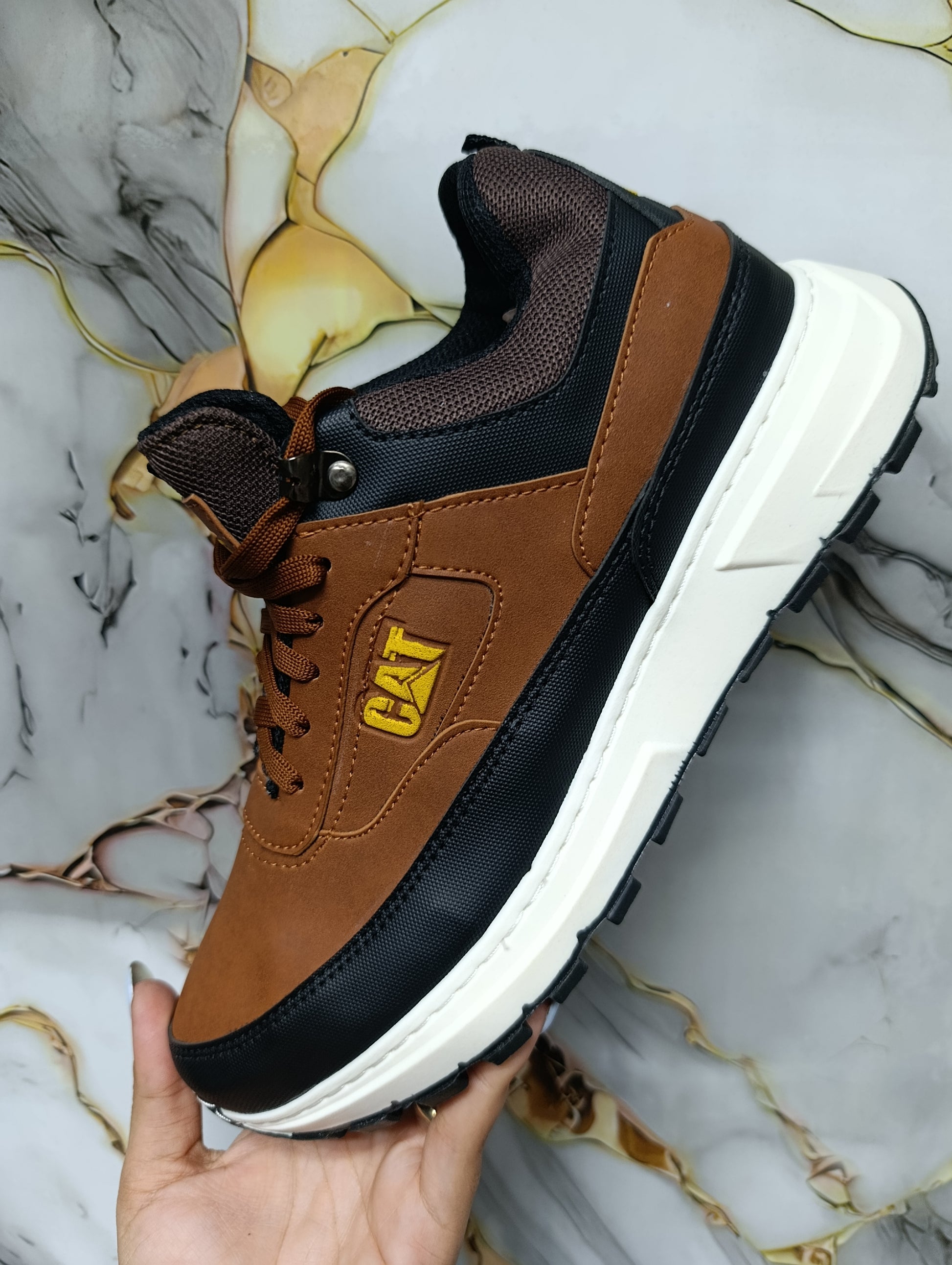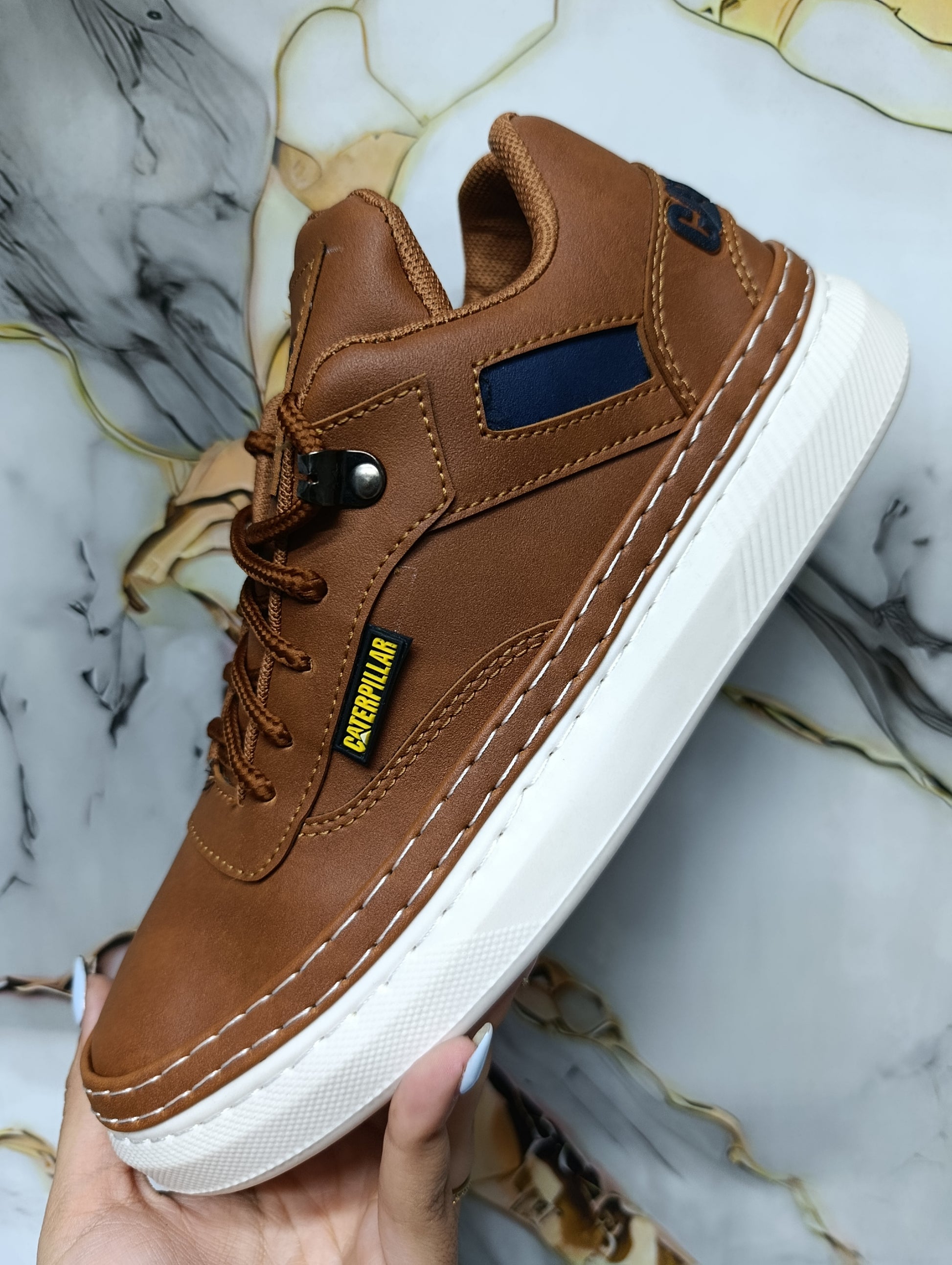 Estas son botas casuales de la marca Caterpillar (CAT), un estilo popular que combina diseño deportivo con la estética robusta, Bota deportiva o casual de corte alto, diseñada para uso diario. Cuentan con plantillas de espuma EVA para absorción de impactos y comodidad duradera, similar a las zapatillas para correr.