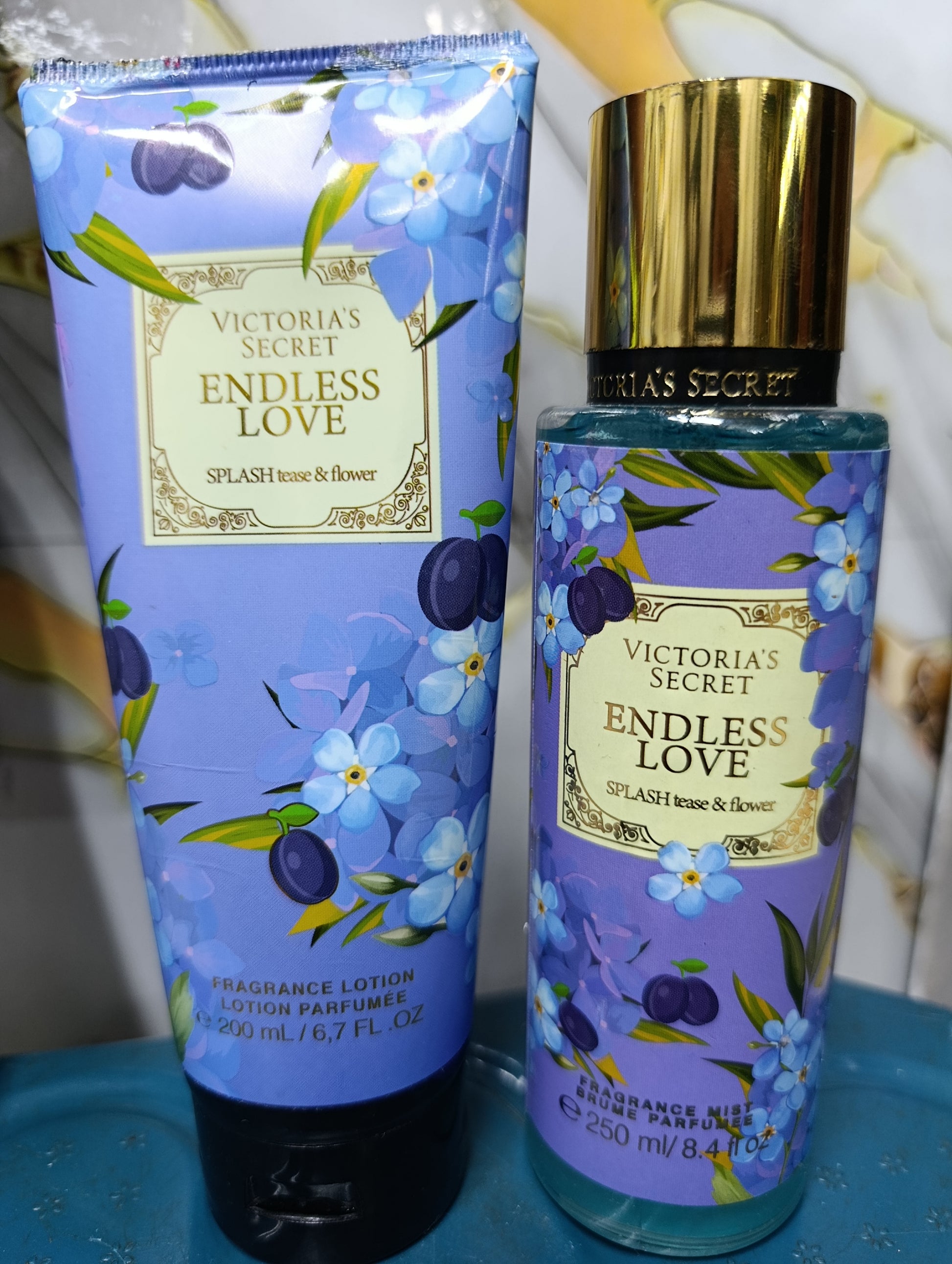 Set de fragancia loción y crema corporal Endless Love de Victoria's Secret. Su aroma se centra en tonos frutales y florales.